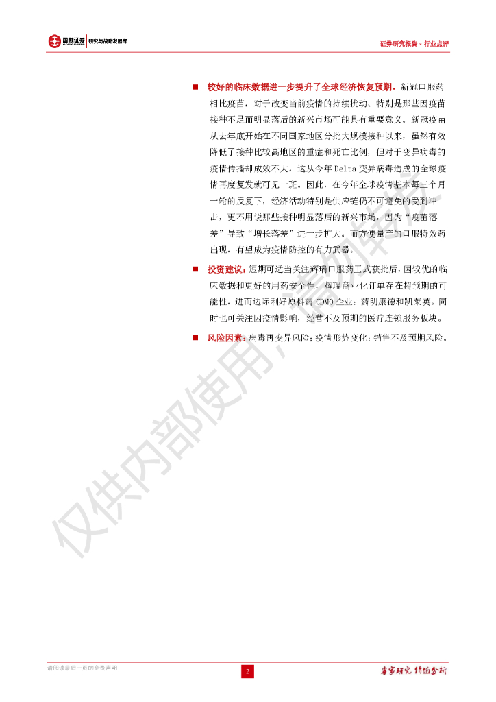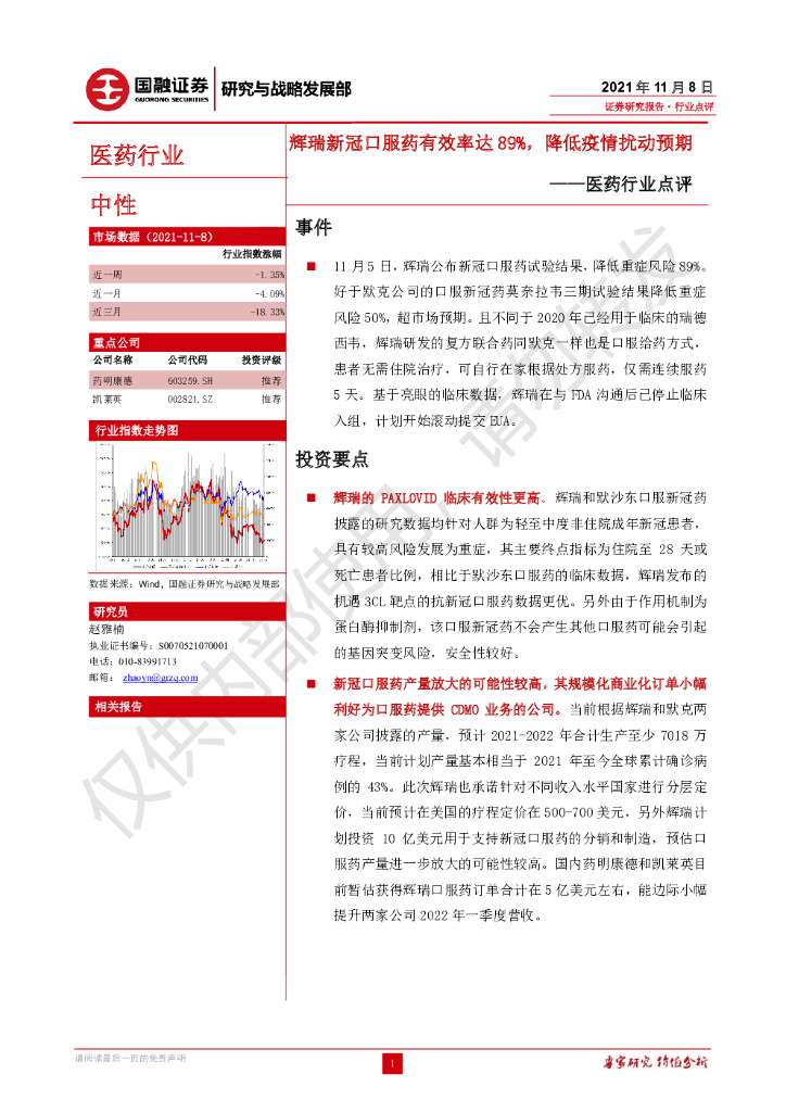 国融证券:医药行业点评:辉瑞新冠口服药有效率达89%,降低疫情扰动预期.pdf