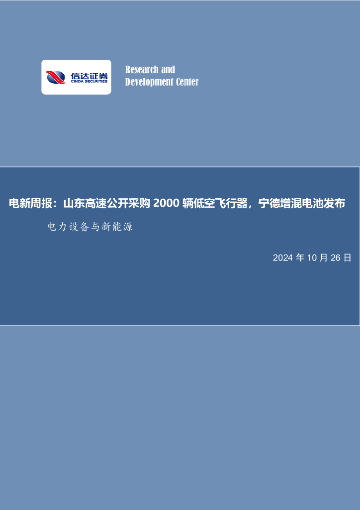 信达证券:电新周报:山东高速公开采购2000辆低空飞行器,宁德增混电池发布电力设备与新能源.pdf