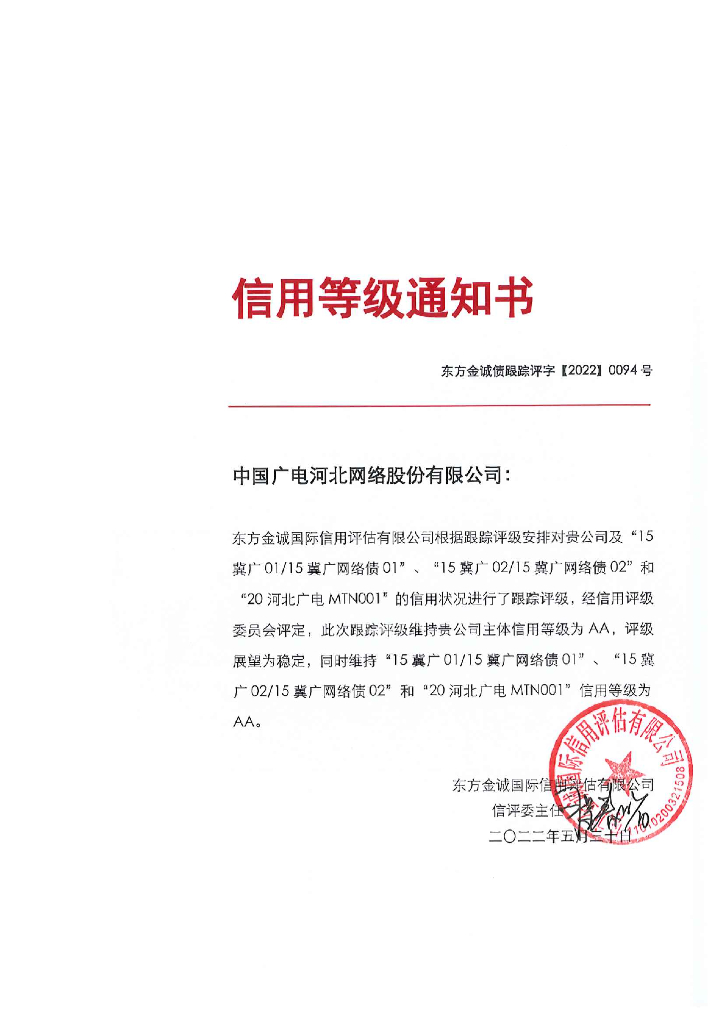 东方金诚:中国广电河北网络股份有限公司主体及相关债项2022年度跟踪评级报告.pdf