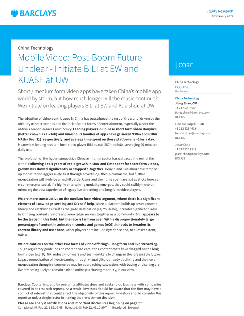 巴克莱:2022年中国视频行业报告(英文版).pdf