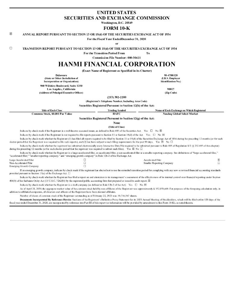 Hanmi Financial Corporation(HAFC)2020财年年度报告(英文版).pdf