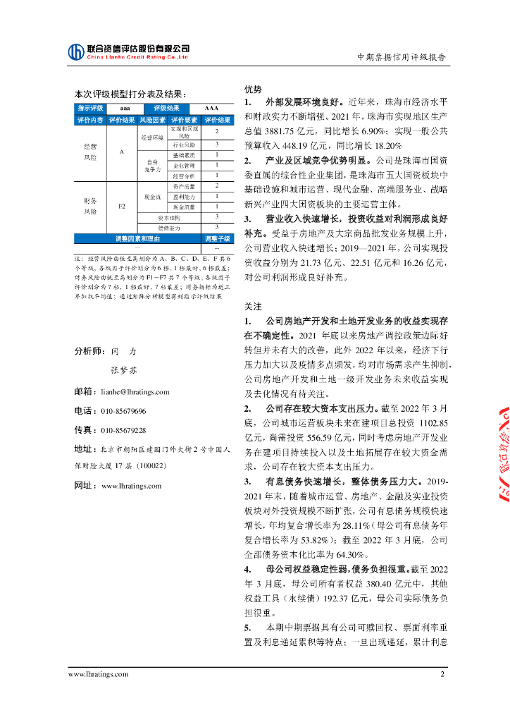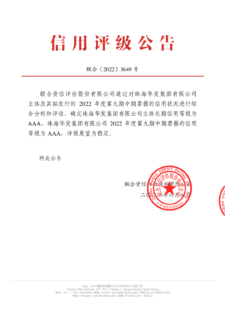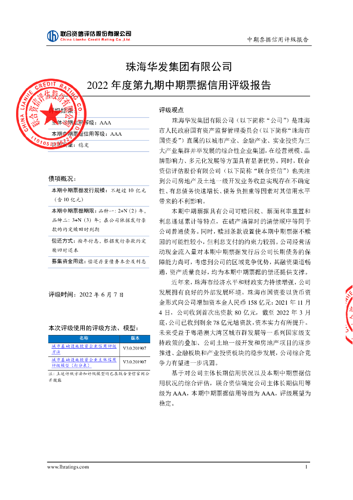 联合资信:珠海华发集团有限公司2022年度第九期中期票据信用评级报告及跟踪评级安排.pdf
