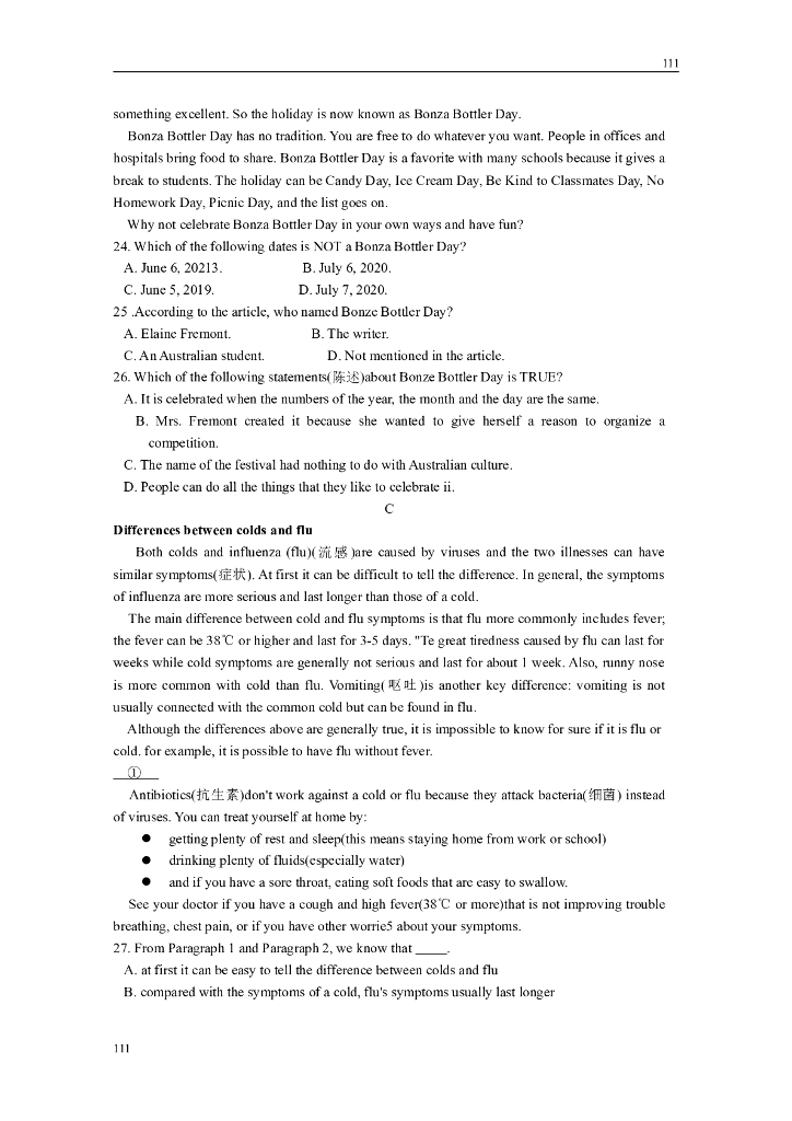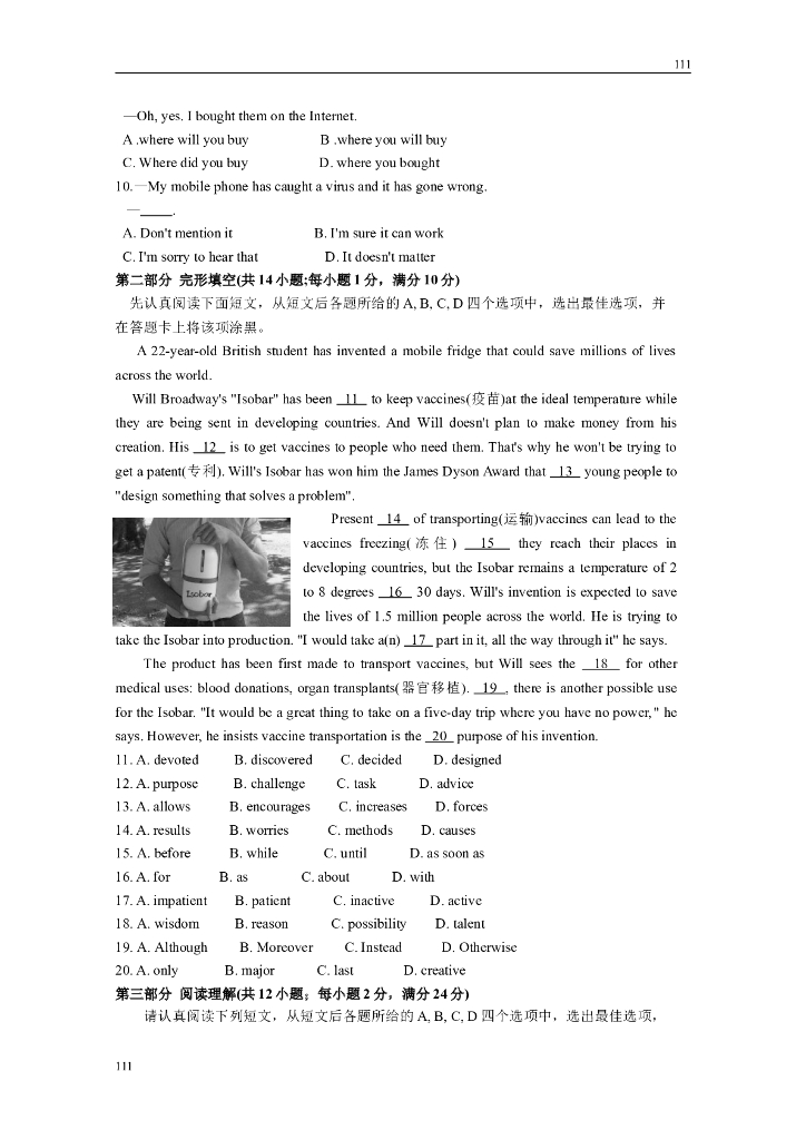 昆山市2020年初三英语调研试卷(含答案)附答案.doc