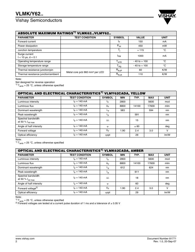 VISHAY - Vishay Semiconductors VLMK/Y62.. Power SMD LED CLCC-6 Flat 使用手册 (1)(1).pdf