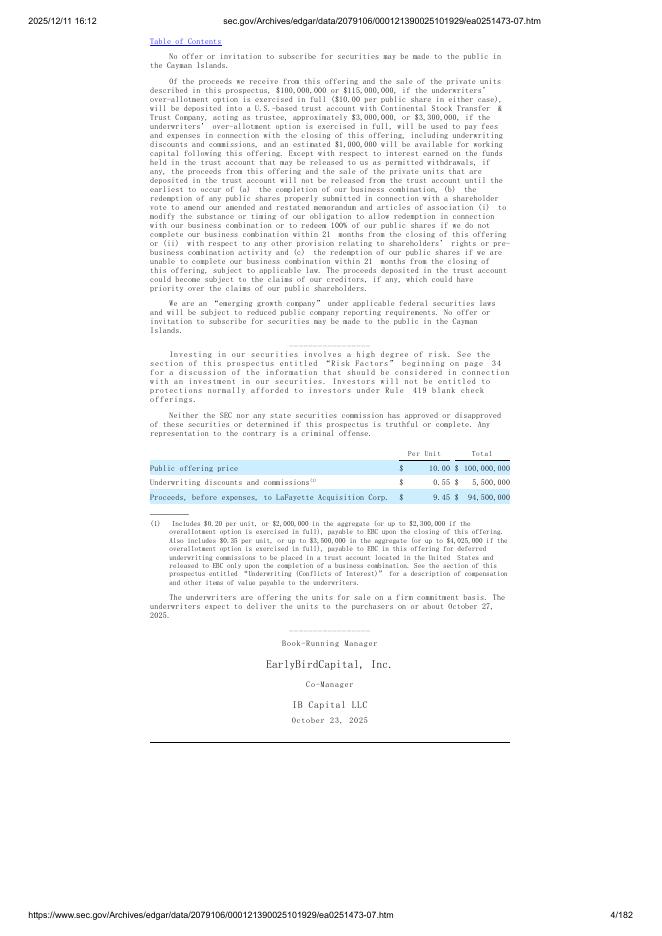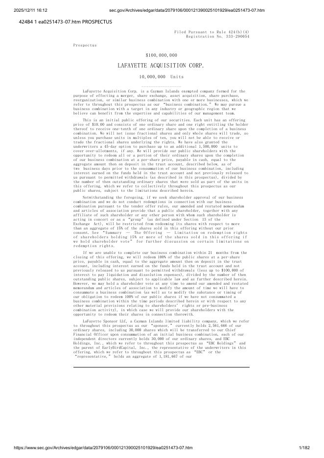 LaFayette Acquisition Corp.美股纳斯达克IPO上市招股说明书.pdf