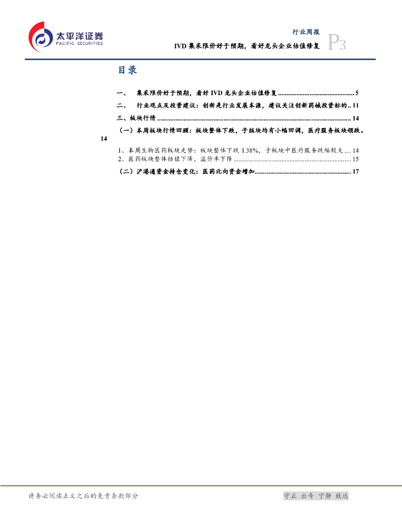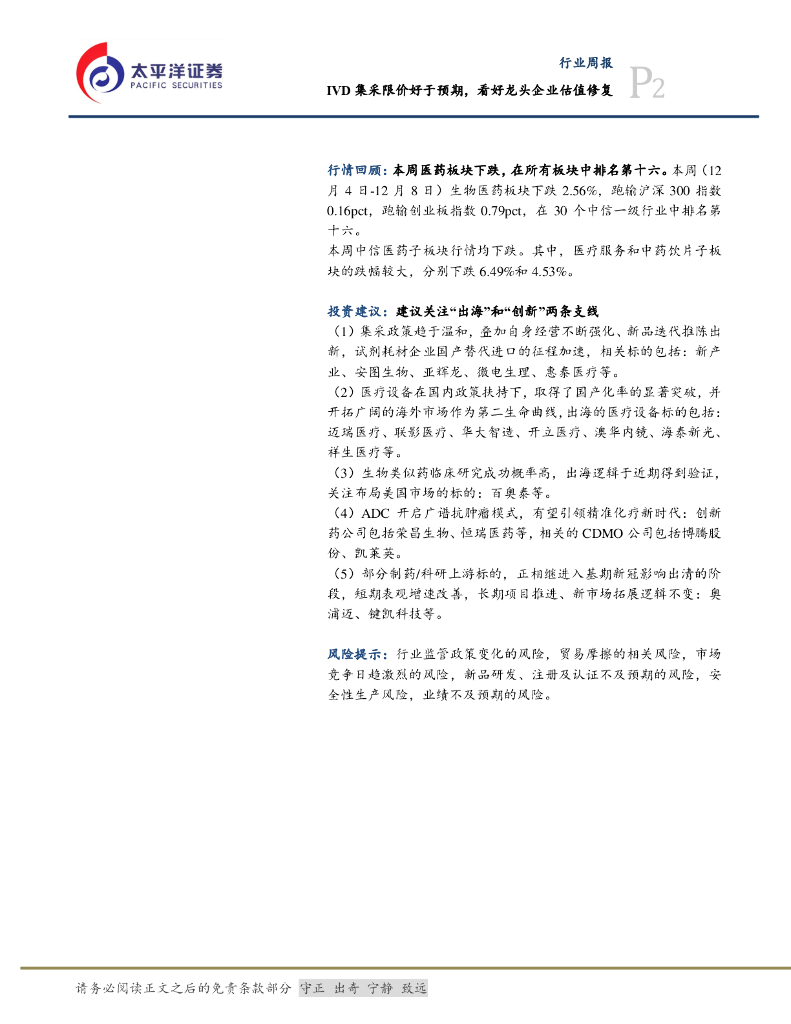 太平洋证券:医药行业周报:IVD集采限价好于预期,看好龙头企业估值修复.pdf
