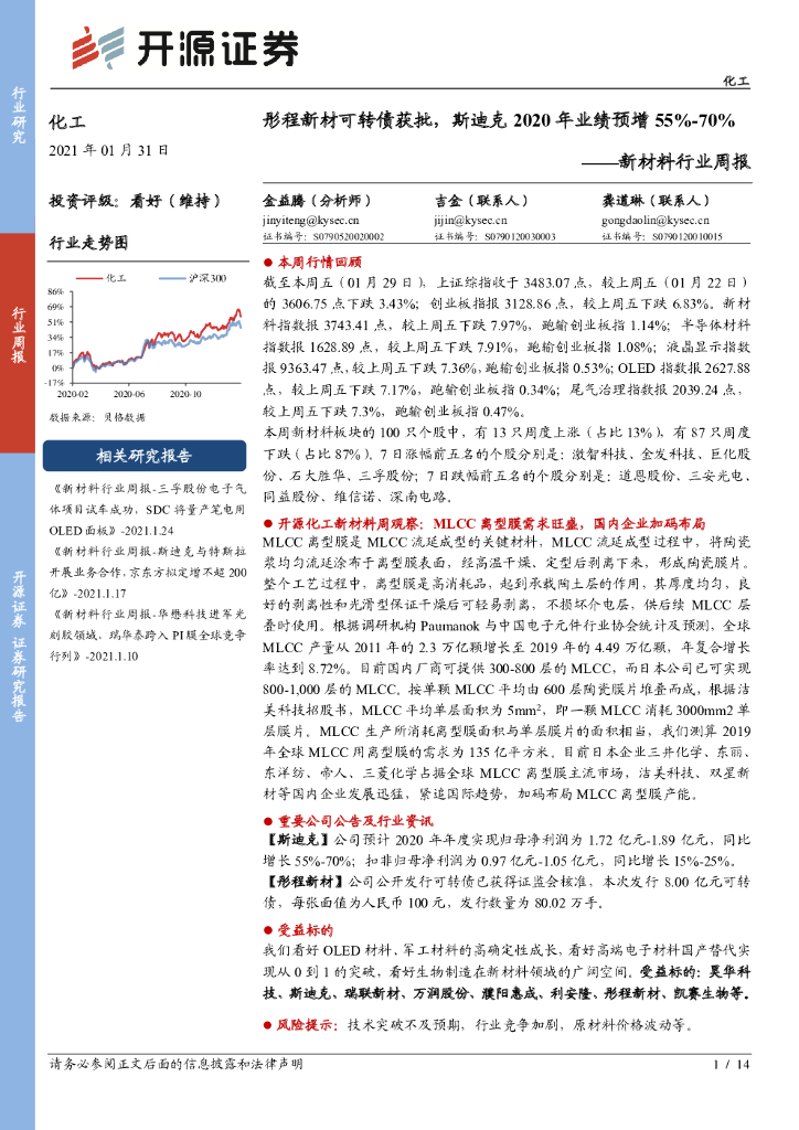 开源证券:新材料行业周报:彤程新材可转债获批,斯迪克2020年业绩预增55%-70%.pdf