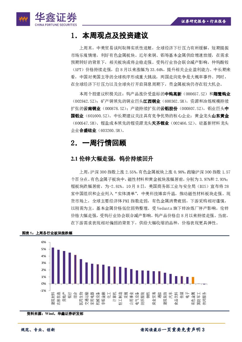 华鑫证券:有色金属行业周报:钨价稳步回升,中期仍看好黄金.pdf