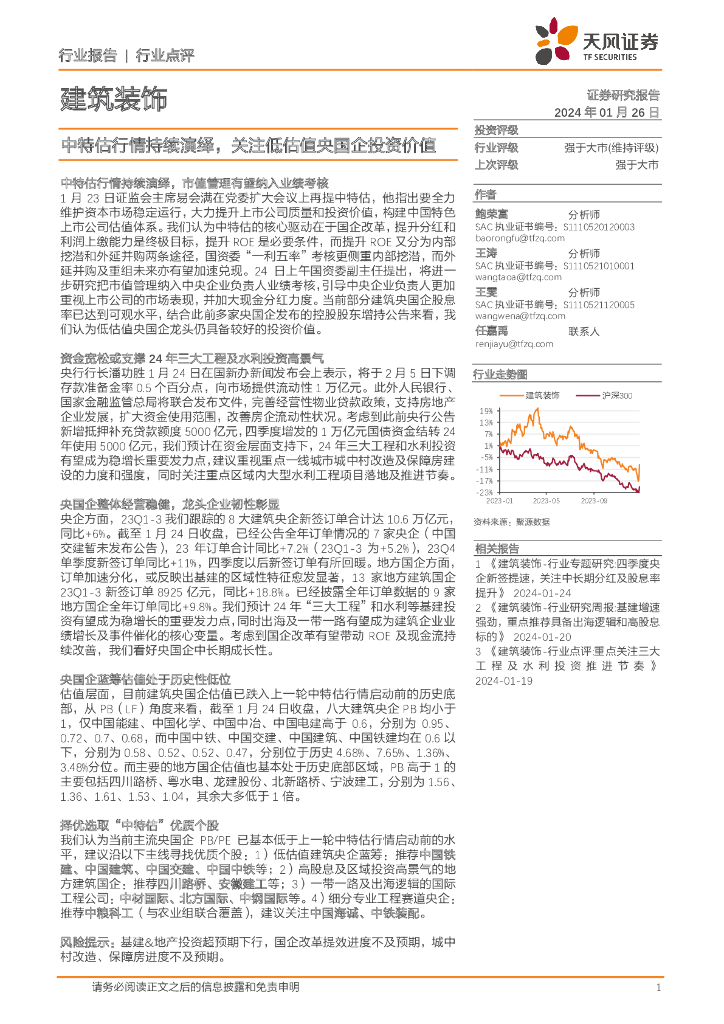 天风证券:建筑装饰行业点评:中特估行情持续演绎,关注低估值央国企投资价值.pdf