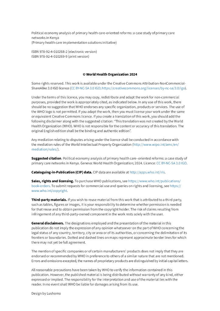 WHO世界卫生组织:2024年以初级保健为导向的改革的政治经济学分析-肯尼亚初级保健网络案例研究报告(英文版).pdf