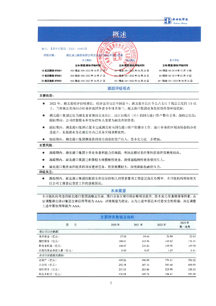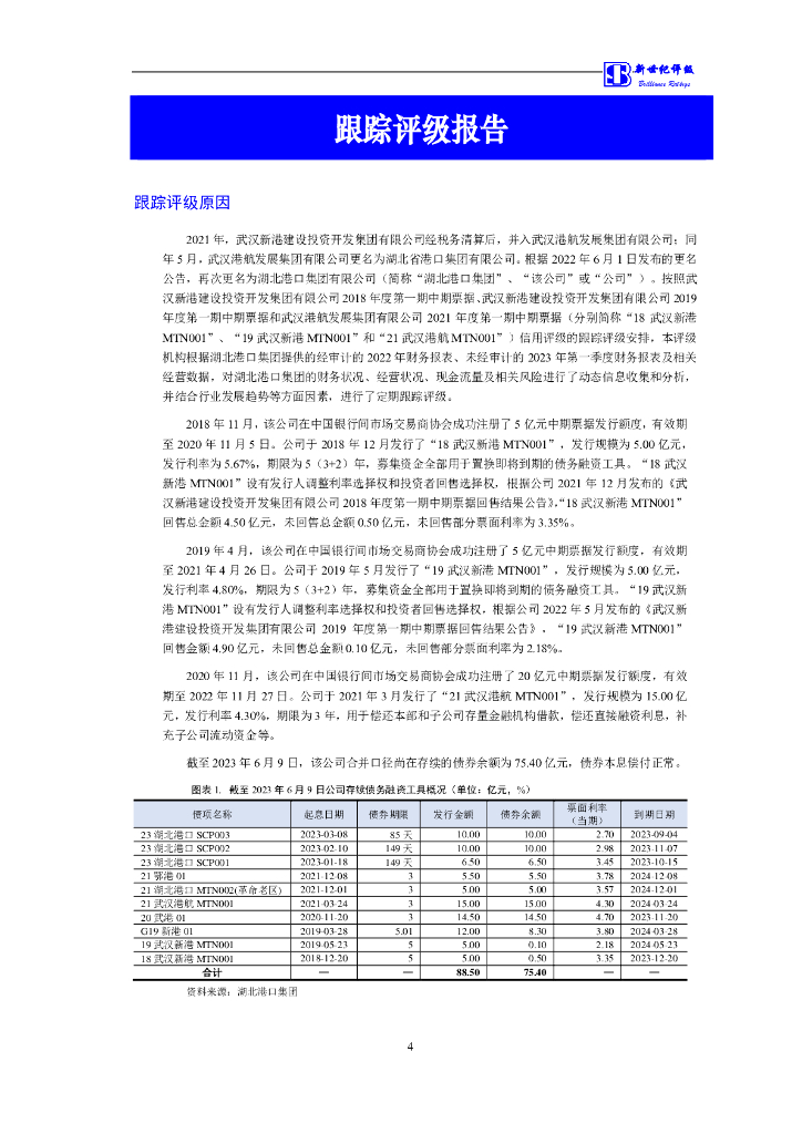 新世纪:湖北港口集团有限公司及其发行的公开发行债券跟踪评级报告.pdf