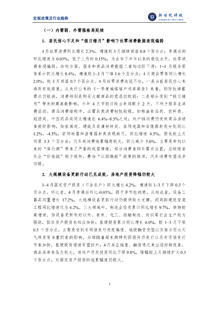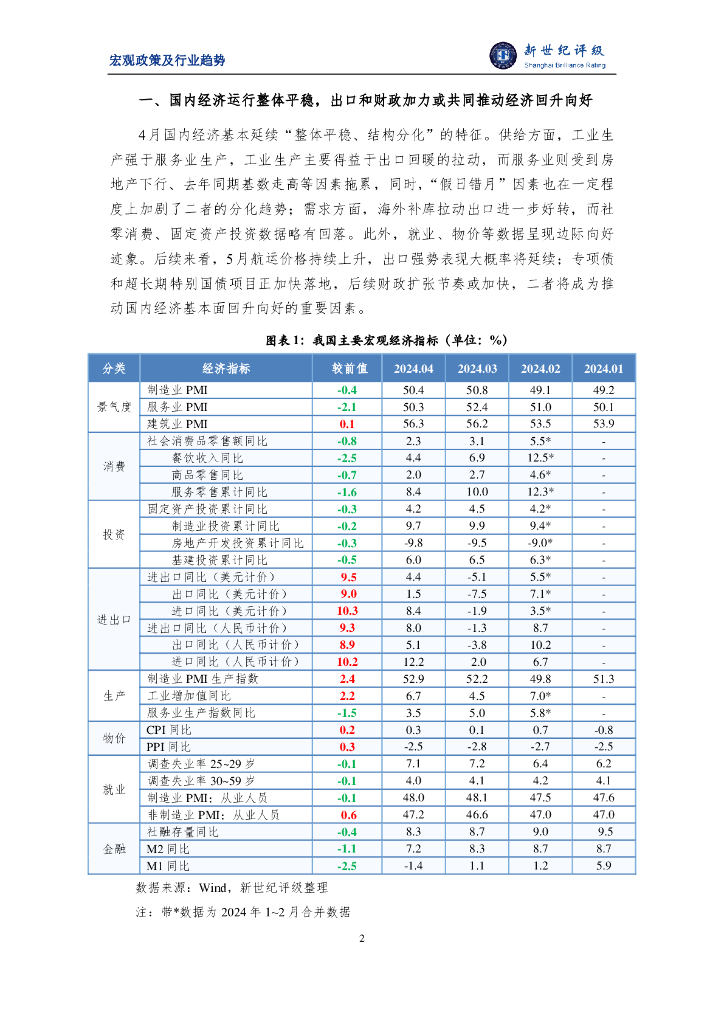 新世纪评级:出口额创同期新高 外向型行业景气度回升——2024年4月宏观和行业运行简析.pdf