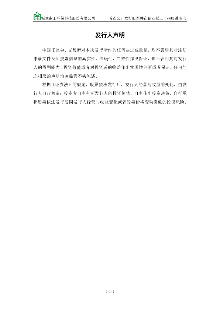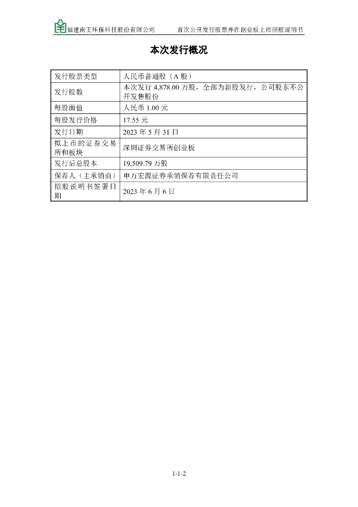 福建南王环保科技股份有限公司创业板IPO上市招股说明书.pdf