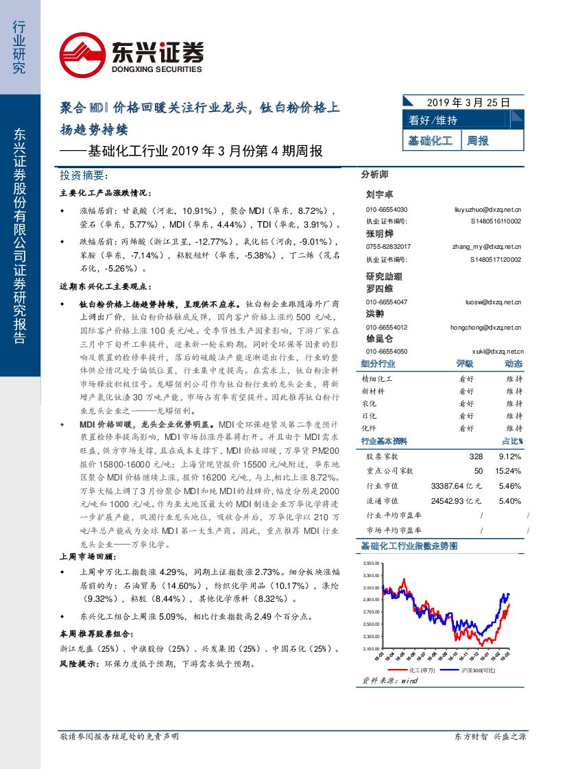 东兴证券:基础化工行业2019年3月份第4期周报:聚合MDI价格回暖关注行业龙头,钛白粉价格上扬趋势持续.pdf