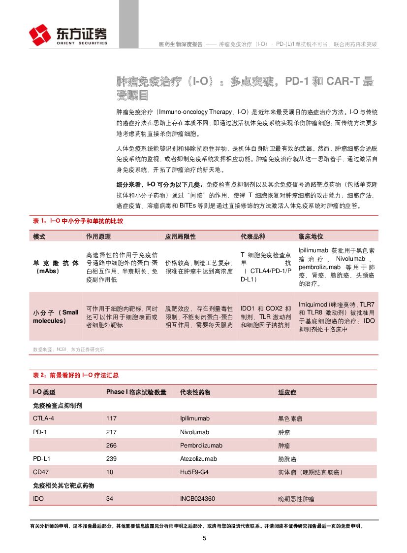 东方证券:医药生物行业深度报告:肿瘤免疫治疗(I-O):PD-(L)1单抗锐不可当,联合用药再求突破.pdf