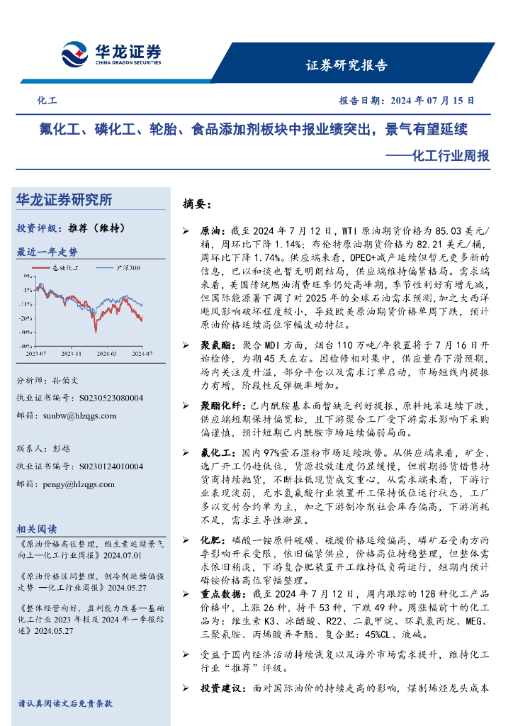 华龙证券:化工行业周报:氟化工、磷化工、轮胎、食品添加剂板块中报业绩突出,景气有望延续.pdf