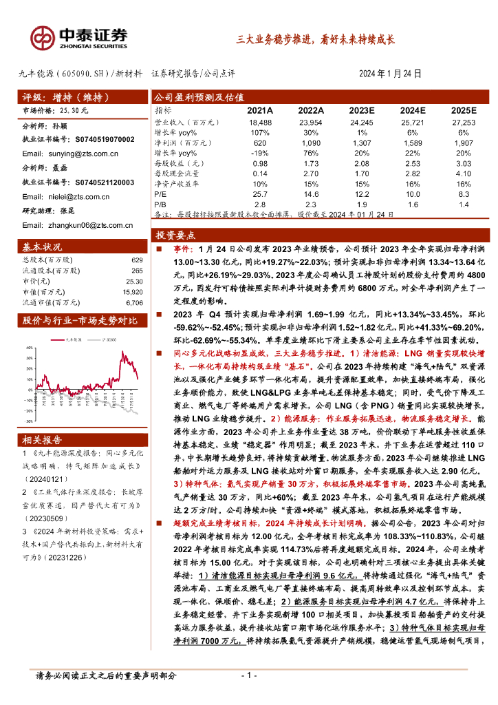 中泰证券:九丰能源(605090)-三大业务稳步推进,看好未来持续成长.pdf