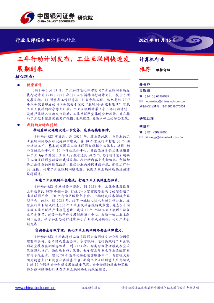 中国银河:计算机行业:三年行动计划发布,工业互联网快速发展期到来.pdf