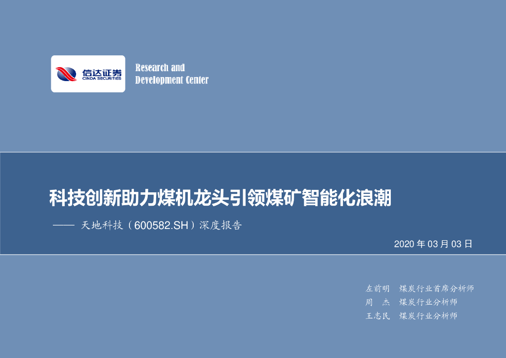 信达证券:天地科技(600582)-深度报告:科技创新助力煤机龙头引领煤矿智能化浪潮.pdf