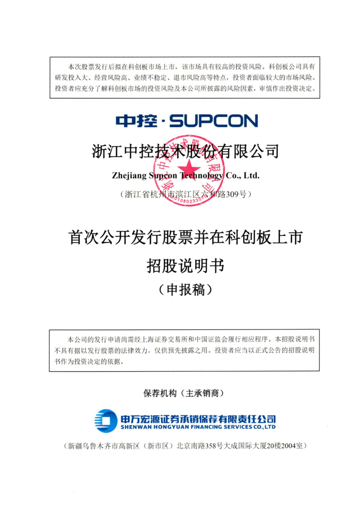 浙江中控技术股份有限公司上交所科创板IPO上市招股说明书.pdf