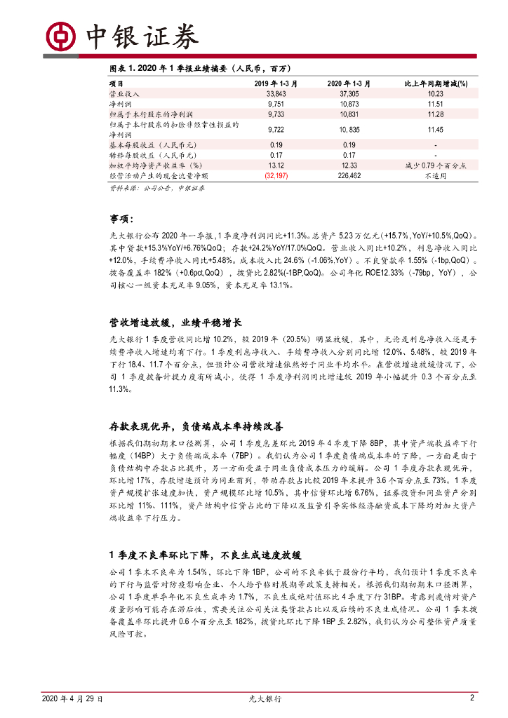 中银证券:光大银行(601818)-存款增长亮眼,业绩平稳增长.pdf
