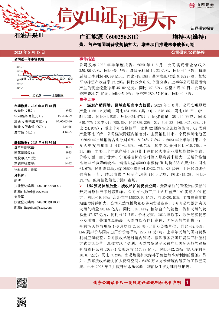 山西证券:广汇能源(600256)-煤、气产销同增营收规模扩大,增量项目推进未来成长可期.pdf