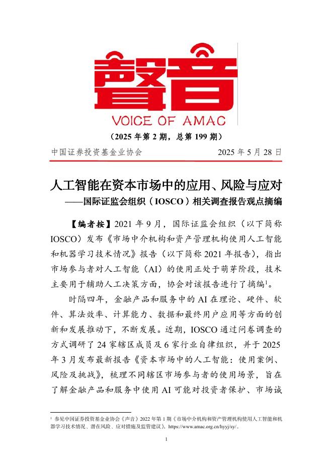 中国证券投资基金业协会:《声音》2025年第2期:人工智能在资本市场中的应用、风险与应对.pdf