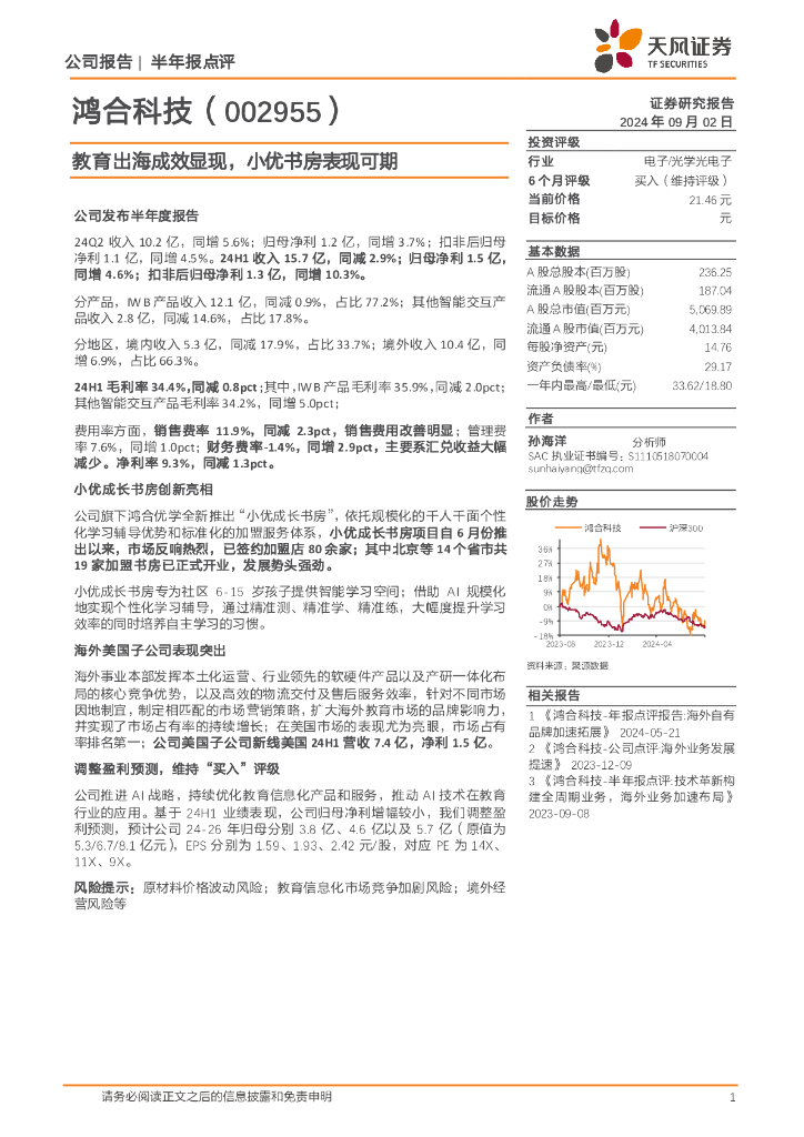 天风证券:鸿合科技(002955)-教育出海成效显现,小优书房表现可期.pdf