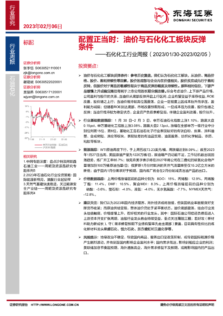 东海证券:石化化工行业周报:配置正当时:油价与石化化工板块反弹条件.pdf