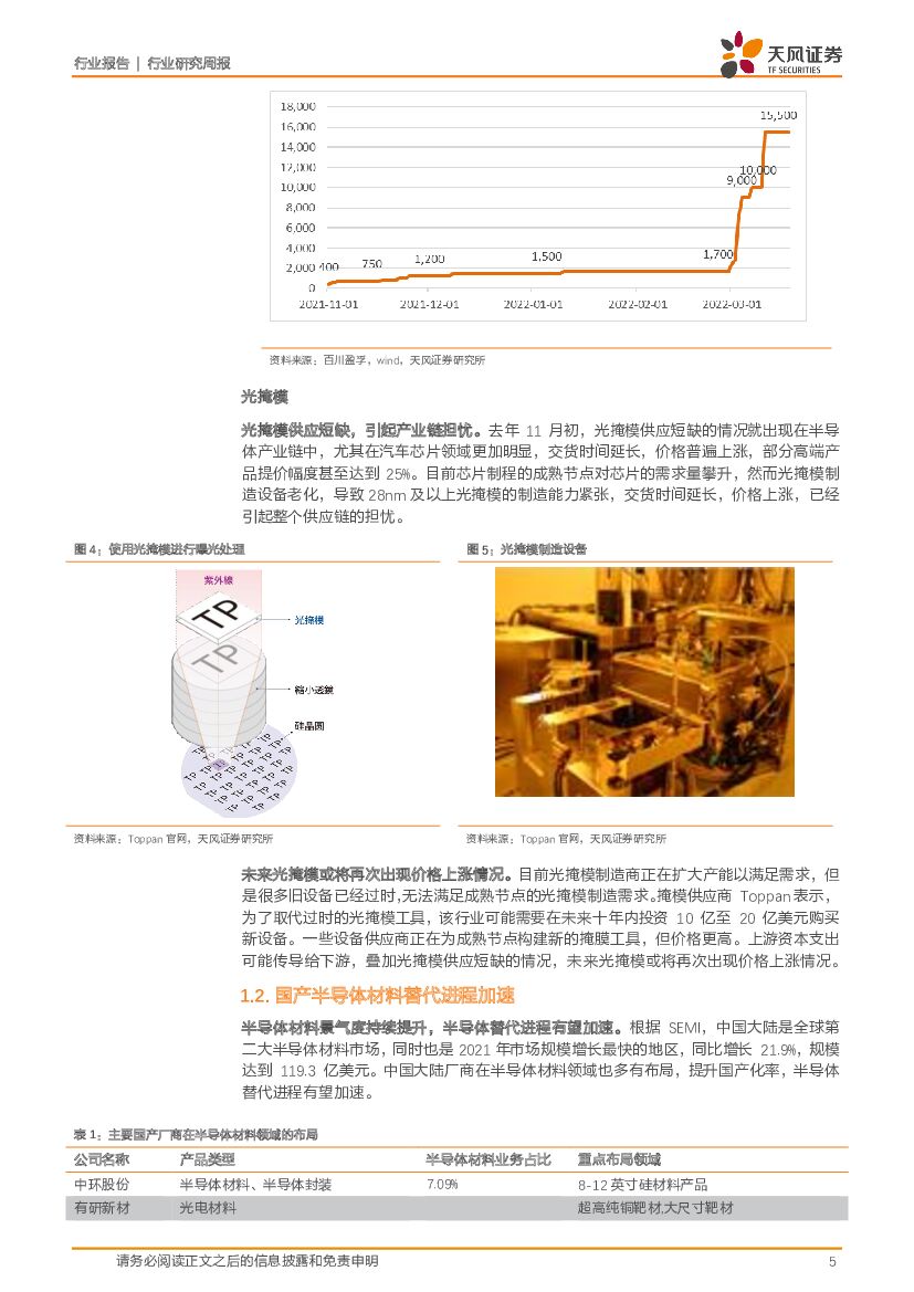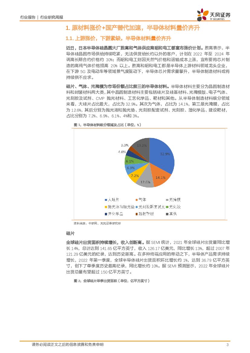 天风证券:半导体行业研究周报:原材料涨价+国产替代加速,半导体材料量价齐升.pdf