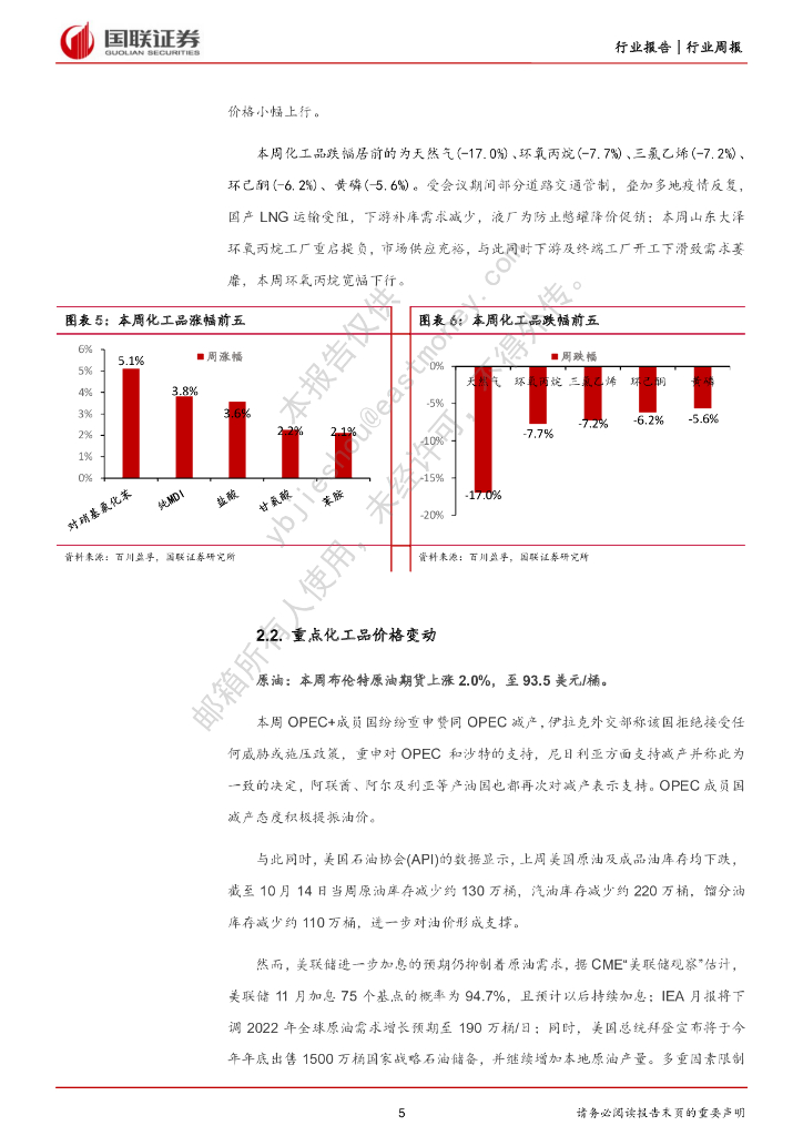 国联证券:化工行业2022年10月周报:OPEC成员国重申减产决定,甘氨酸、对硝基苯价格回暖.pdf