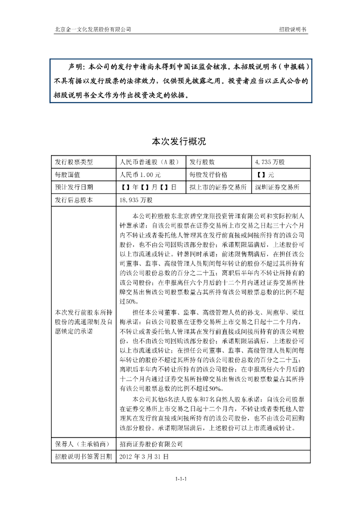北京金一文化发展股份有限公司深交所主板IPO上市招股说明书.pdf