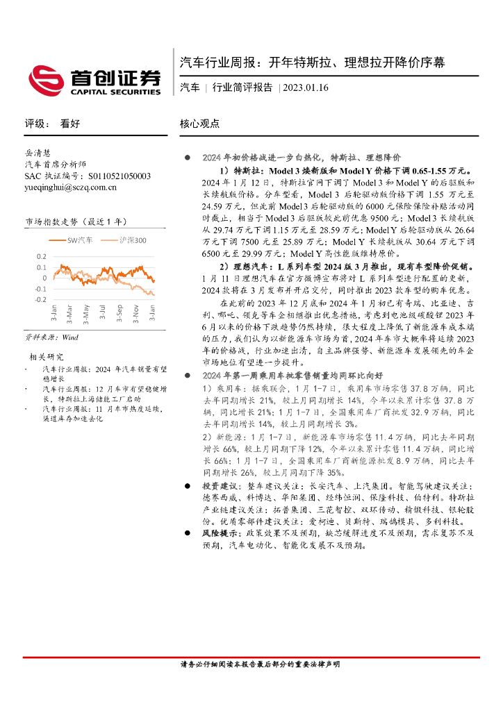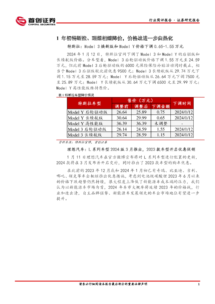 首创证券:汽车行业周报:开年特斯拉、理想拉开降价序幕.pdf