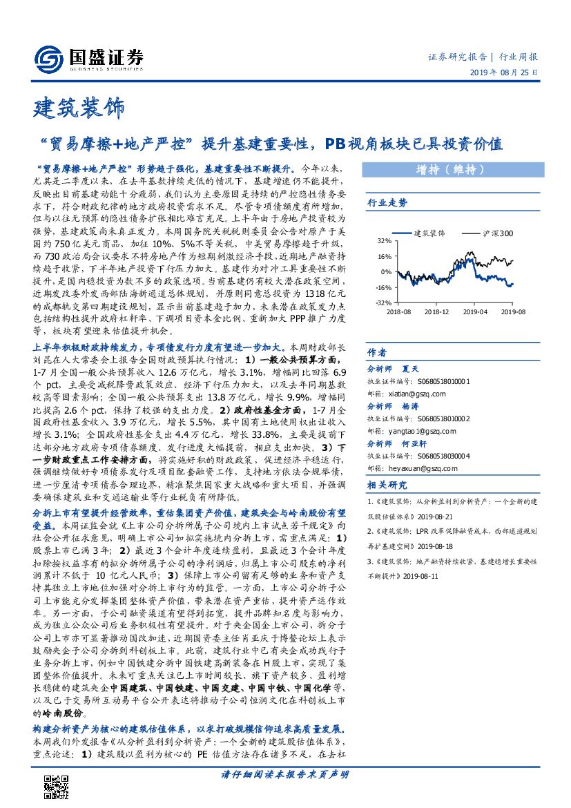 国盛证券:建筑装饰行业周报:“贸易摩擦+地产严控”提升基建重要性,PB视角板块已具投资价值.pdf