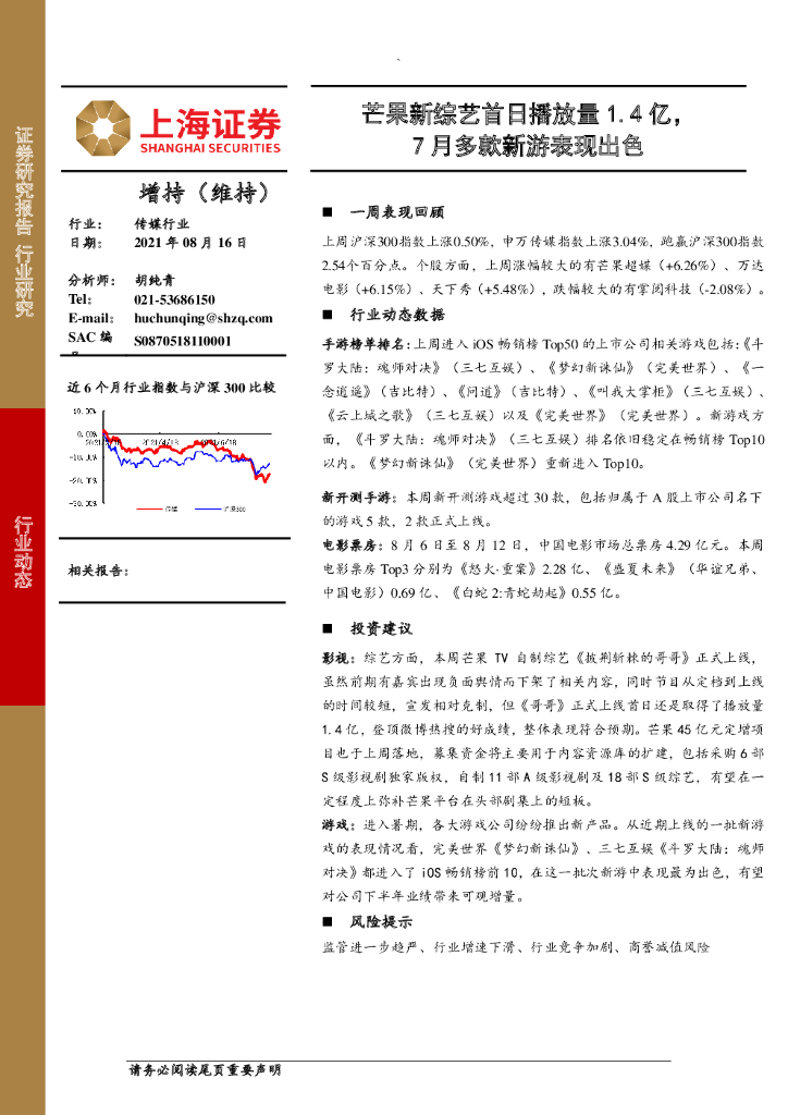 上海证券:传媒行业:芒果新综艺首日播放量1.4亿,7月多款新游表现出色.pdf