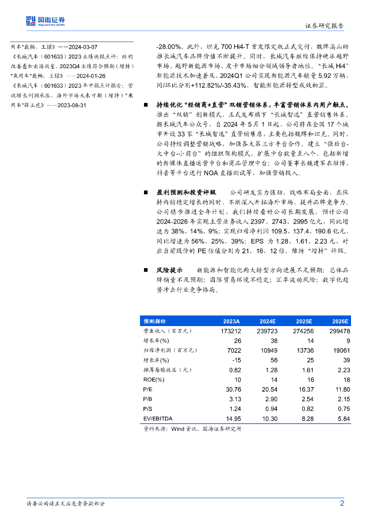 国海证券:长城汽车(601633)-2024年一季报点评报:2024Q1业绩同环比双增,高端向上优质发展.pdf