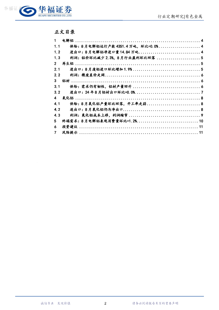 华福证券:铝月报(202409):8月电解铝产量延续增势,矿端复产仍有阻力.pdf