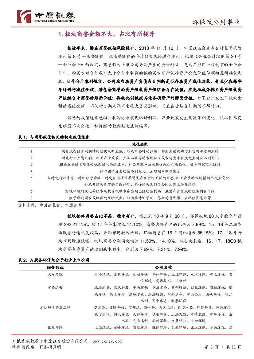 中原证券:环保及公用事业行业专题研究:板块商誉集中度高,关注业绩承诺兑现情况.pdf