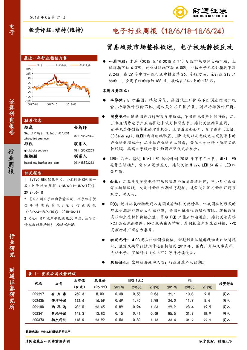 财通证券:电子行业周报:贸易战致市场整体低迷,电子板块静候反攻.pdf