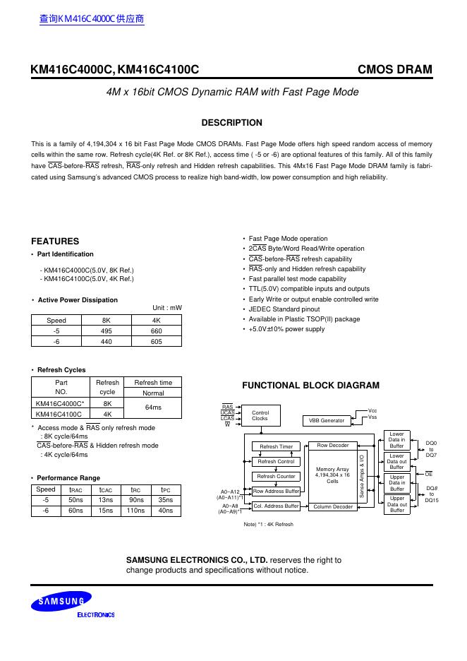 SAMSUNG KM416C4000C,KM416C4100C CMOS DRAM 数据手册.pdf