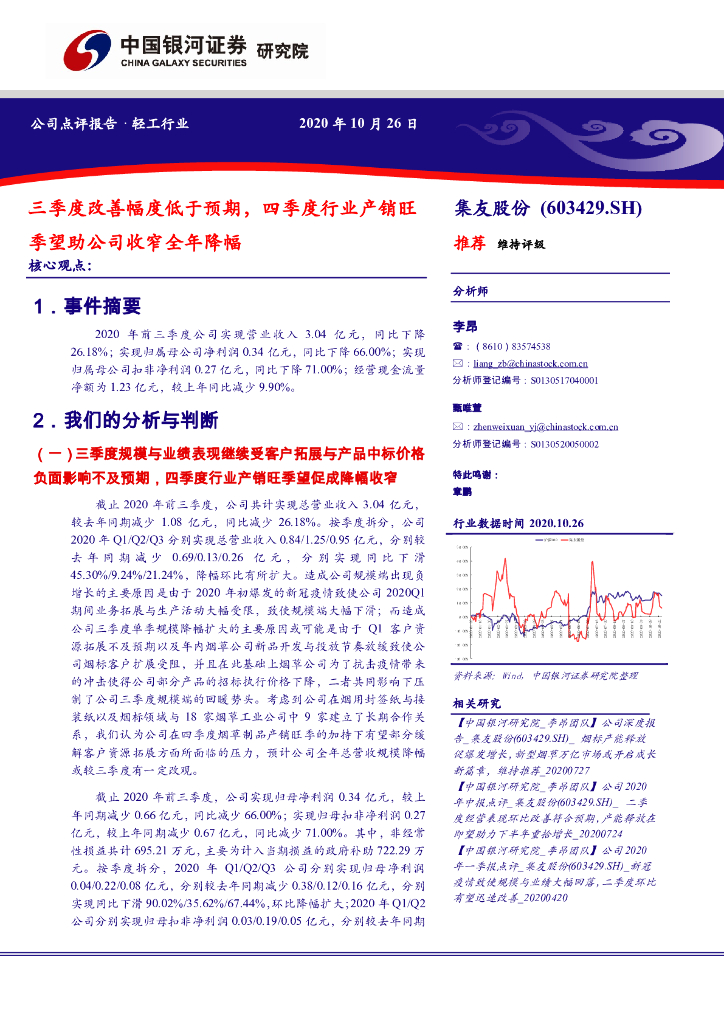 中国银河:集友股份(603429)-三季度改善幅度低于预期,四季度行业产销旺季望助公司收窄全年降幅.pdf