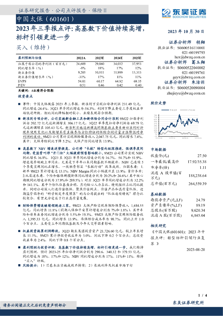 东吴证券:中国太保(601601)-2023年三季报点评:高基数下价值持续高增,标杆引领更进一步 .pdf