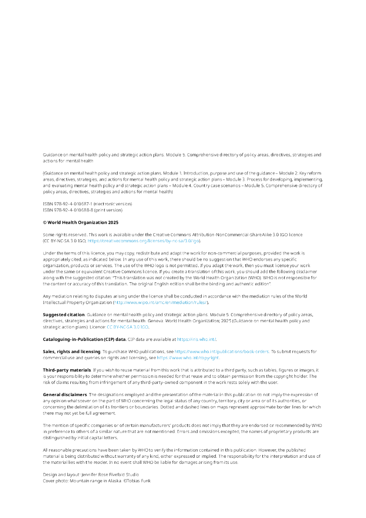 WHO世界卫生组织:2025年心理健康政策和战略行动计划指南5-政策领域,指令,战略和心理健康行动的全面目录报告(英文版).pdf
