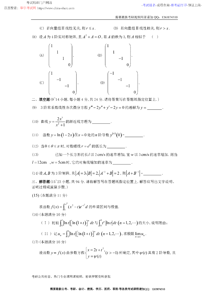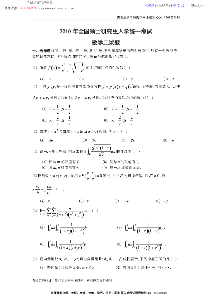 2010考研数学二真题及答案解析.pdf