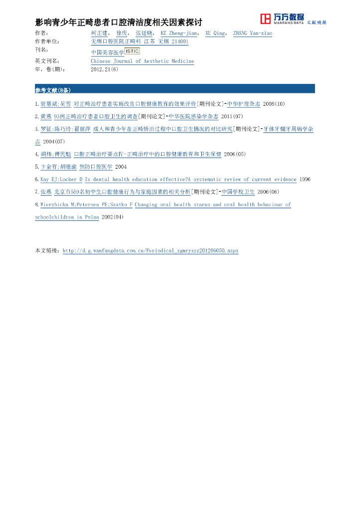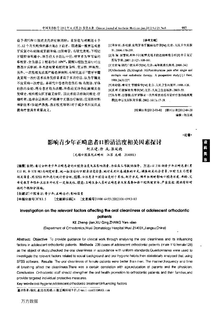 影响青少年正畸患者口腔清洁度相关因素探讨.pdf