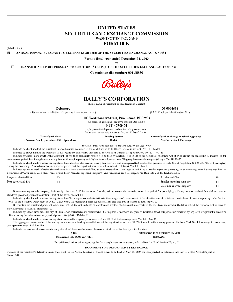Bally's Corporation(BALY)2023财年年度报告(英文版).pdf