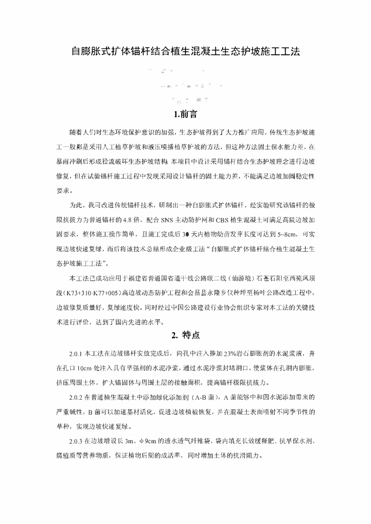 锚杆结合植生混凝土生态护坡施工工法12页.pdf