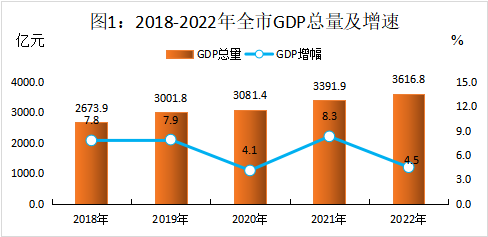 2022年,在市委、市政府的坚强领导下,全市上下以迎接党的二十大召开和学习宣传贯彻党的二十大精神为主线,全面落实“三高四新”战略定位和使命任务,深入贯彻“疫情要防住、经济要稳住、发展要安全”要求,坚持“聚焦、裂变、创新、升级、品牌”的工作思路,紧扣“一突破、两进位、三覆盖、六倍增”目标,积极推进“三大支撑八项重点”工作,高效统筹疫情防控和经济社会发展,有力应对了复杂多变的经济环境和突如其来的疫情冲击,主要经济指标增速运行在合理区间,全市经济承压前行、总体平稳、稳中提质。