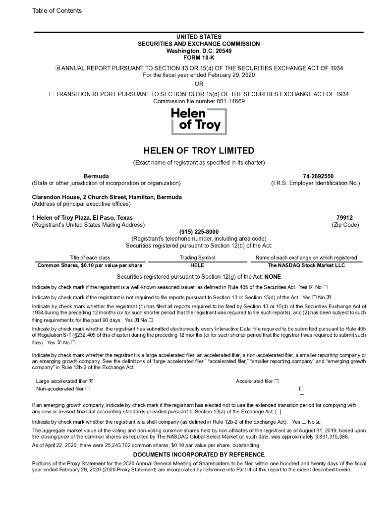 Helen of Troy Limited(HELE)2020财年年度报告(英文版).pdf