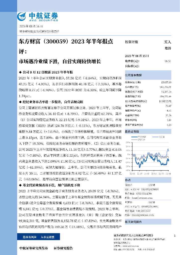 中航证券:东方财富(300059)-2023年半年报点评:市场遇冷业绩下滑,自营实现较快增长.pdf
